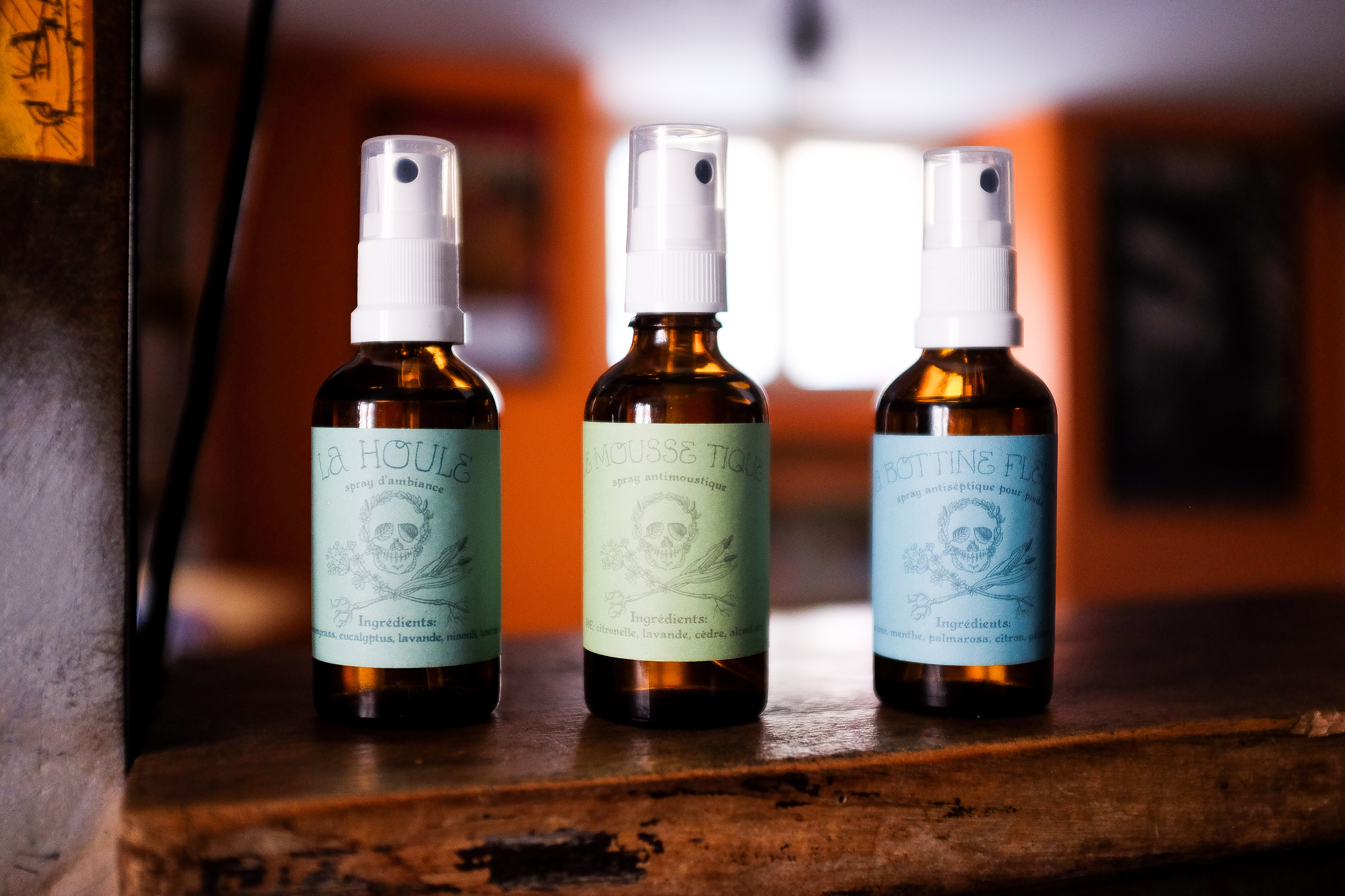 - La houle: HE pin, lemongrass, eucalyptus, lavande, niaouli, tea tree, alcool aro